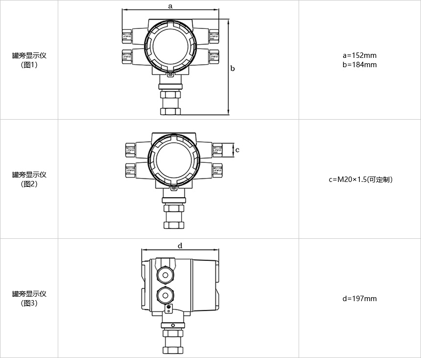 可選配多點平均溫度計、壓力變送器等溫度、壓力儀表實現溫度、壓力值的罐下顯示