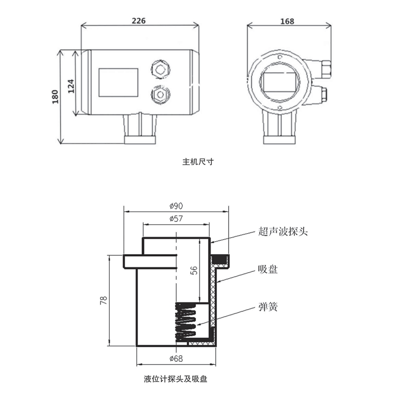 非接觸式測量。超聲波傳感器(探頭)在容器外部利用磁力吸附式,無需對被測容器開孔,就可以實現液位測控;